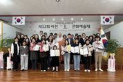 (누리일보) 재단법인 아천문화교류재단(ACEF)이 주최-주관한 '제12회 아천효문화예술제’가 11월 1일 오후3시 아천문화교류센터에서 시상식이 개최됐다. 이날 행사에는 부모사랑 나라사랑의 올바른 가치관을 심어주기 위해 문화예술 부문의 우수한 인재들을 발굴 시상하고 올해로 12회를 맞았다. 시상식은 이승훈의 사회로 식전행사에 노 오케스트라의 연주를 시작으로 개회식, 국민의례등의 순서로 진행되었으며, 재단법인 아천문화교류재단 이사장인 성민스님은 인사말을 통하여 로마 제국시대의 철학자, 정치가, 작가, 그리고 스토아 철학의 대표인물인 루키우스 안나이우스 세네카의 말을 빌어서 인생은 철학이고, 철학은 삶이라고 하면서 평안속에서 행동으로 옮기는 삶이 진정으로 미래를 꿈꾸는 삶이라고 이야기하면서 수상자분들의 축하의 말씀과 더블어 그들의 삶이 희망과 꿈이 넘치기를 믿는다고 피력했다. 수상과 관련, 최고상인 국회의장상에는 고봉국님, 특별상인 문화체육관광부장관상에는 목포애향중학교 송은유학생, 학생부종합대상에는 한밭여자중학교 이인혜학생, 서울특별시장상에는 정호겸, 권수지님. 경기도지사상에는 박상우, 윤세화님, 인천시장상에는 박지선님,