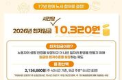 (누리일보) 17년 만에 노사 합의로 결정! 2026년 시간당 최저임금 10,320원 ■ 최저임금이란? 노동자의 생활 안정을 보장하고 더 나은 일자리 환경을 만들기 위해 임금의 최저수준을 보장하는 제도 ■ 월 환산액 2,156,880원(주 40시간 기준, 유급 주휴* 8시간 포함) *주휴수당: 근로자(1주 소정근로시간 15시간 이상)가 1주일 개근한 경우, 주 1회 유급휴일에 대해 지급되는 수당 ■ 포함되는 금액 - 매월 1회 이상 정기 지급하는 임금(매월 지급 상여금, 식비, 숙박비, 교통비 등) ■ 제외되는 금액 - 통화 이외의 것으로 지급하는 임금 - 소정근로 외의 임금(시간외수당 등)