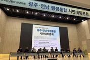 (누리일보) 가칭 ‘광주전남통합추진 시민포럼(준)’과 민형배·신정훈·이개호·주철현 국회의원, 이병훈 호남발전특별위원장이 공동 주최한 ‘광주·전남 행정통합 시민대토론회’가 11일 오전 전남대 광주캠퍼스 컨벤션홀에서 지역민의 높은 관심 속에 성황리에 개최됐다. 이번 토론회는 지난 9일 이재명 대통령이 광주·전남 지역구 국회의원들과 시도지사를 청와대로 초청해 통합 방안을 논의한 직후 처음 열린 시민공론장이라는 점에서 큰 주목을 받았다. 기조발언에 나선 이정록 전남대 명예교수(전 대한지리학회장)는 “수도권 일극 체제에 맞서 광주와 전남이 생존하기 위해서는 통합을 통한 초광역 경제권 구축이 필수적”이라고 강조했다. 이어 김재철 광주전남연구원 선임연구위원이 좌장을 맡아 진행된 열린토론에서는 학계와 시민사회를 아우르는 11명의 전문가 패널이 참여해 열띤 논의를 펼쳤다. 이재창 전 나주대 교수는 행정구역 분리로 인한 막대한 손실을 지적하며 시민사회의 역할을 주문했다. 이 교수는 “무안공항 활성화 실패나 최근 AI 데이터센터 유치전에서 보듯, 한 뿌리였던 광주와 전남이 나뉘어 발생한 소모적 경쟁과 파열음이 심각한