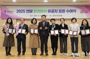 (누리일보) 용인특례시는 지난달 30일 시청 비전홀에서 ‘2025년 연말 환경분야 유공 표창 수여식’을 열었다고 1일 밝혔다. 이 자리에서는 ▲생태계 보전 ▲환경교육 ▲수질보호 ▲탄소중립 ▲대기보전 ▲환경미화 ▲재활용가능자원 ▲화학물질 안전관리 등 8개 환경분야 유공자 58명에게 표창이 전달됐다. 행사에 참석한 이상일 시장은 각자의 분야에서 묵묵히 일하고 있는 수상자들에게 감사의 뜻을 전했다. 이상일 시장은 “지역 곳곳에서 활발하게 활동해 주시는 여러분 덕분에 더욱 친환경적이고 지속가능한 도시로 발전하고 있다”며 “여러분의 선한 영향력으로 더 많은 시민들이 환경에 관심을 가지고 동참해주시면 좋겠다”고 말했다.