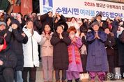 (누리일보) 이재준 수원특례시장은 1일 아침 팔달산 서장대에서 시민들과 함께 해맞이를 하고, “시민 여러분께서 소망하시는 모든 것을 성취하시길 기원하겠다”고 말했다. 이재준 시장은 “올해도 시민 여러분과 함께 수원을 더 새롭고, 더 빛나게 만들기 위해 노력하겠다”며 “모든 시민이 수많은 역사와 희망을 만드는 멋진 한 해가 되길 바란다”고 기원했다. 서장대 일원을 가득 메운 시민들은 떠오르는 해를 보며 함께 소원을 빌었다. 수원시는 12월 31일 저녁부터 1월 1일 아침까지 일원에서 시민들과 함께하는 송년·신년 행사를 열었다. 12월 31일 밤 10시 30분부터 행궁광장 특설무대에서 ‘제야음악회’가 열렸다. 자정에는 여민각에서 제야 타종 행사를 열고 2026년 병오년(丙午年)의 시작을 알렸다. 이재준 시장, 이재식 수원특례시의회 의장, 김영진(수원시병)·김준혁(수원시정) 의원, 시민 대표 등이 타종했다. 이재준 수원시장과 김현수 제1부시장, 4개 구청장, 실·국장 등은 1일 오전 9시 현충탑을 참배했다.