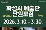 (누리일보) 화성시문화관광재단은 2026년 ‘화성시 예술단’을 이끌어갈 오케스트라 및 국악단 단원을 모집한다. 화성시 예술단은 화성시문화관광재단이 운영하는 공공 예술단체로, 2020년 창단 이래 국악단과 오케스트라를 중심으로 기획공연과 화성시 주요 행사에 참여하며 지역 문화예술 활성화에 기여하고 있다. 화성시를 대표하는 전문 예술단체로서 고전부터 현대 음악에 이르는 폭넓은 레퍼토리를 선보이며 시민들에게 수준 높은 공연을 제공하고 있는 화성시 예술단은 연간 30여 회의 공연을 진행하며 ‘정기연주회’, 다양한 테마의 ‘기획공연’, 클래식을 친근하게 풀어내는 ‘마티네 콘서트’, 시민들의 일상 가까이에서 음악을 만날 수 있는 ‘공연투어’ 등 다양한 시리즈를 통해 시민들의 문화 향유 기회를 확대하고 있다. 이번 2차 단원 모집에서는 ▲오케스트라 단원 41명 ▲국악단 단원 14명을 선발할 계획이다. 선발된 단원은 임용일부터 약 6개월간 화성시 예술단의 예술 활동 및 공연 전반에 참여하게 된다. 채용 절차는 서류 심사, 오디션, 면접 전형으로 진행되며, 지원서 접수는 3월 10일부터 3월 30일 오후 6시까지