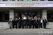 (누리일보) 안산시가 정부의 안산사이언스밸리지구(ASV) 경기경제자유구역 지정으로 본격 ‘실행 단계’에 접어들며 적극적인 세일즈 행정에 박차를 가하고 있다. 안산시는 4일 오전 경기경제자유구역 ASV 조성 현장을 시찰하기 위해 주한 독일 대사와 주한 태국 대사, 글로벌 기업 관계자들이 시를 공식 방문했다고 밝혔다. 이민근 안산시장은 이날 ASV 내 한양대 ERICA 캠퍼스혁신파크 조성 부지에서 대사 일행 등에게 구체적 실행 로드맵을 중심으로, 첨단로봇과 인공지능(AI) 등 첨단산업 생태계 조성 전략을 브리핑했다. ■ 기업 관계자들 ASV 조성에 관심 이날 오전 안산시에 게오르크 슈미트 주한독일대사와 타니 생랏 주한태국대사를 비롯한 독일·태국 대사 방문단(독일 경제 참사관, 태국 투자관 및 경제부서장 등)과 양국 기업 대표단이 공식 방문했다. 이들은 안산시청과 안산사이언스밸리지구를 순차 방문해 ASV 개발계획 브리핑과 현장 라운딩을 진행했다. 이민근 안산시장은 ASV 지구 현장에서 직접 개발계획을 브리핑하며, 방문단과 기업 대표들에게 안산사이언스밸리지구의 구체적 공간 구상과 산업 전략,