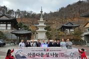(누리일보) 양주시 장흥면은 최근 한국불교태고종 청련사에서 구세군과 한국불교태고종, 태고복지재단과 함께 ‘2026년 아름다운 설 나눔 키트 전달식’을 개최했다. 이번 행사는 설 명절을 앞두고 지역 내 저소득 취약계층 주민들이 따뜻하고 풍성한 명절을 보낼 수 있도록 이웃돕기 성품을 지원하기 위해 마련됐다. 이날 전달된 설 나눔 키트는 총 100박스로, 설 특선식품 6종과 간편 조리식품 4종, 후식류 5종 등으로 구성됐다. 키트는 관내 독거 어르신과 장애인, 한부모 가정 등 저소득 취약계층 100가구에 전달될 예정이다. 전달식에는 구세군 한국군국 한세종 서기장관, 홍봉식 국장 등 관계자 6명과 한국불교태고종 총무원장이자 청련사 회주인 상진스님, 재경부장 효능스님, 사회부장 법연스님, 홍보부장 법진스님, 사서실장 도휘스님과 청련사 대중스님, 나태인 장흥면장 등 15여 명이 참석했다. 참석자들은 직접 키트를 포장하는 봉사활동 및 전달식을 진행한 뒤, 장흥면 소재 저소득 취약가구 2곳을 방문해 물품을 전달하며 이웃사랑을 실천했다. 구세군 한국군국 한세종 서기장관은 “청련사와 함께 따뜻한 이웃사랑