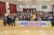 (누리일보) 과천시 노인대학 입학식이 지난 3일 과천시노인복지관 토리홀에서 열렸다. 과천시노인대학은 대한노인회 과천시지회에서 운영하는 평생학습 프로그램으로, 어르신들의 평생학습 기회를 확대하고 건강한 노후 생활을 지원하기 위한 것이다. 입학식을 시작으로 올해 12월까지 운영되며, 스포츠댄스, 민요, 가요교실, 하모니카, 요가 등 8개 강좌를 통해 어르신들에게 다양한 학습 기회를 제공한다. 이날 행사에는 신입생 200여 명을 비롯해 신계용 과천시장, 강신태 대한노인회 과천시지회장, 홍성문 노인대학장 등이 참석했다. 입학생들은 학생대표의 노인강령 낭독을 통해 배움에 임하는 자세를 다졌다. 한 어르신은 “나이가 들어서도 배움은 계속될 수 있고 함께할 수 있다는 점이 큰 용기가 된다”라며 “다양한 수업에 참여해 새로운 목표에 도전해 보고 싶다”라고 말했다. 신계용 과천시장은 “비록 이 프로그램의 이름은 노인대학이지만 활기찬 어르신들께서 함께하는 만큼 언제나 젊은 열정과 웃음이 가득한 ‘청춘대학’이 되기를 바란다”라며 “어르신의 평생학습 활동이 더욱 활성화 될 수 있게 지원해 나가겠다”라고 밝혔
