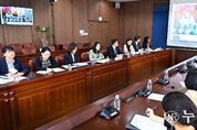 (누리일보) 기획예산처는 3월 25일 오후 3시 20분 정부세종청사 중앙동에서 박홍근 장관과 전 직원이 함께하는 소통 간담회를 개최했다. 이번 간담회는 ‘박홍근 장관 X Vision X: 우리가 꿈꾸는 기획예산처의 시작’이라는 슬로건 아래, 신임 장관의 취임을 환영하고 직원들과 함께 기획처의 방향성에 대해 논의하기 위해 마련된 상견례 자리이다. 특히, 기획처 내 조직문화 혁신 리딩그룹인 ‘Vision X’가 참석하여 앞으로의 활동 계획을 소개하고, 새로운 일하는 방식에 대한 다양한 의견을 나누었다. 간담회는 직원들이 솔직한 의견을 부담없이 개진할 수 있도록, 대형 스크린을 통해 실시간 설문 결과와 익명 의견을 공유하는 디지털 소통 플랫폼을 병행하여 진행됐다. 또한, 중앙동 로봇카페 앞 개방형 계단 공간을 활용하여, 장관과 직원들이 계단에 자유롭게 둘러앉음으로써 심리적 거리감을 좁히고 편안하고 수평적인 분위기에서 진행됐다. 첫 번째 순서인 ‘반가워요 장관님’ 코너에서는 장관의 업무 스타일과 첫인상 등을 주제로 실시간 설문조사를 진행했다. 직원들이 뽑은 박 장관의 첫인상 키워드는 ‘따뜻한 소통가’이었으며, 박 장