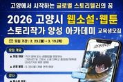 (누리일보) 고양산업진흥원이 웹콘텐츠 산업을 이끌어갈 스토리 전문 인재 발굴을 위한 ‘2026 고양시 웹소설·웹툰 스토리작가 양성 아카데미’ 교육생을 모집한다. 이번 교육과정은 진흥원과 스토리 콘텐츠 분야 전문가들로 구성된 한국만화스토리협회와 협업해, 고양시 작가 지망생들의 데뷔를 목표로 이도경, 김양수, 송향희 등 현역 작가들이 다양한 창작 노하우를 공유할 예정이다. 스토리 작가 데뷔에 관심 있는 고양시민, 고양시 소재 대학교 재학생·졸업생을 대상으로 하며, 오는 3월 19일까지 이메일로 신청하면 된다. 교육은 4월 10일부터 매주 금요일 총 10회에 걸쳐 진행되며, 자세한 내용은 포스터 내 QR코드 또는 진흥원 누리집에서 확인할 수 있다. 진흥원은 웹툰·웹소설 등 부가가치가 큰 웹콘텐츠 IP를 발굴하고, 우수한 창작 인재 양성을 위한 교육 사업을 추진하고 있다. 특히 ‘IP융복합 콘텐츠 클러스터’조성을 통해 고양시 특화 웹콘텐츠 산업을 지속적으로 육성해 나갈 계획이다.